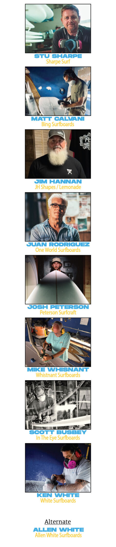 The Class of 2026. L-R: Bernie Crouch, Legend; Bryan Hewitson, Surfer; Scott Duerr, Surfer; Mike Angiulo, CLPA; Rich Price, Pioneer; Dr. Lisa Carulli, Surfer; Matt Pruett, Media: Drew Brophy, Culture; Tony Giordano, Industry; Gary Germain, ECSHOF President; Jay Reale, Legend; Todd Morcom, Surfer; Hunter Joslin, emcee. Missing: Rick Barry, who accepted for Carl “Tinker” West (d), Pioneer. Photo: Bruce Chrisner