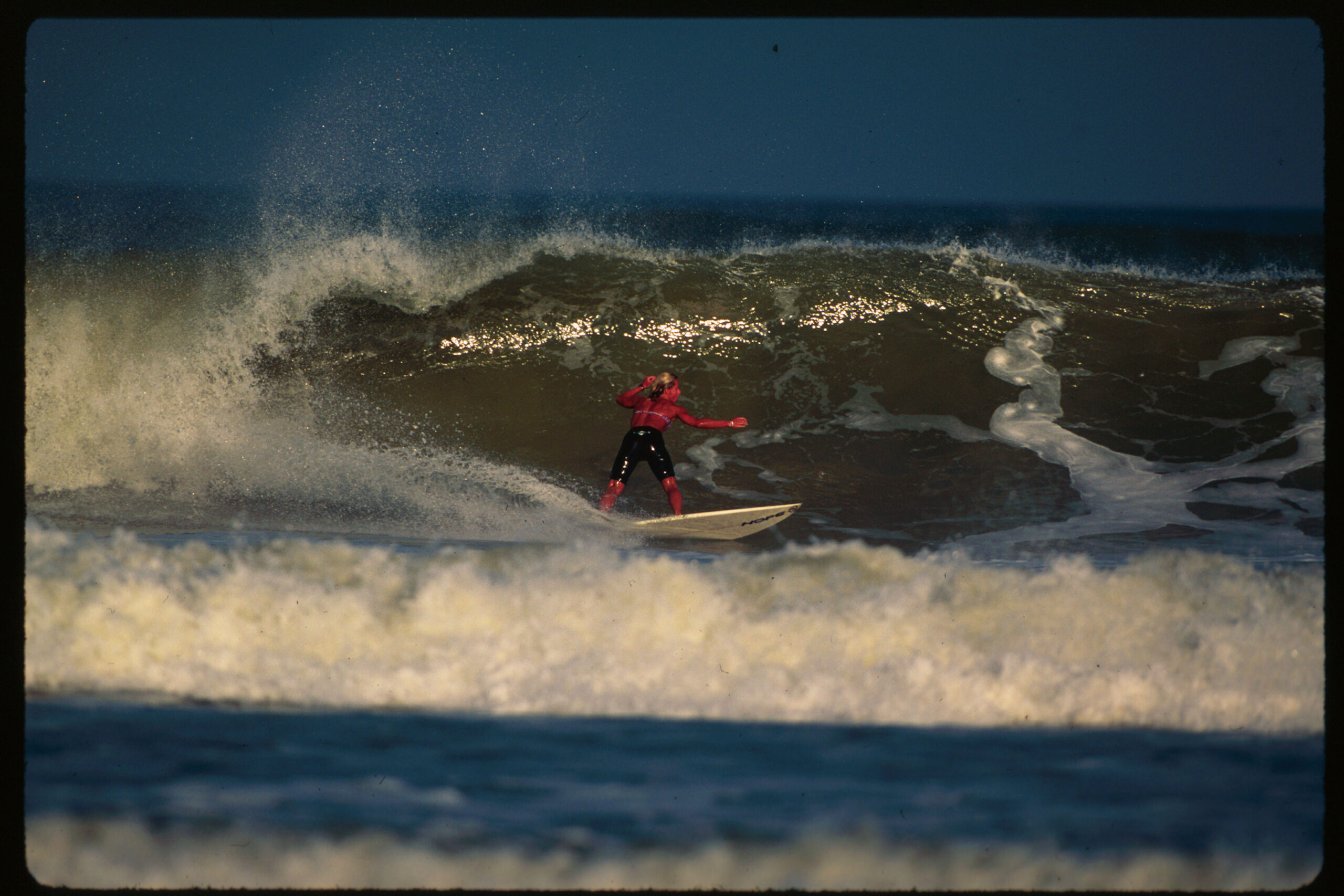 In the showdown for the 1985 World Championship, Zamba came from behind to beat Australians Pam Burridge and Jodie Cooper, winning the final two events of the season. Her margin of victory was smaller in 1986, and she slumped in 1987, finishing third. She began a high-intensity fitness training program — even hiring a sports psychologist, a decision far ahead of the curve for pro surfing at the time — and came roaring back in 1988 to nab another title. Though Zamba later admitted, “After that, I kind of lost the passion. It was all competition. Even in my free surfing, I found I was doing it like competition. It took all the fun out of it.”