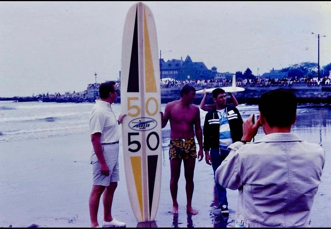 Goldsmith set up the first surfboard rental trailers in Newport, Rhode Island. He created small beachfront shops that would become popular hangouts for the area’s surfing youth. He was also the first legitimate promoter of New England surfing contests. He produced many well-attended events in the region, including the New England Invitational Surfing Championship, which drew competitors from all across the country.
