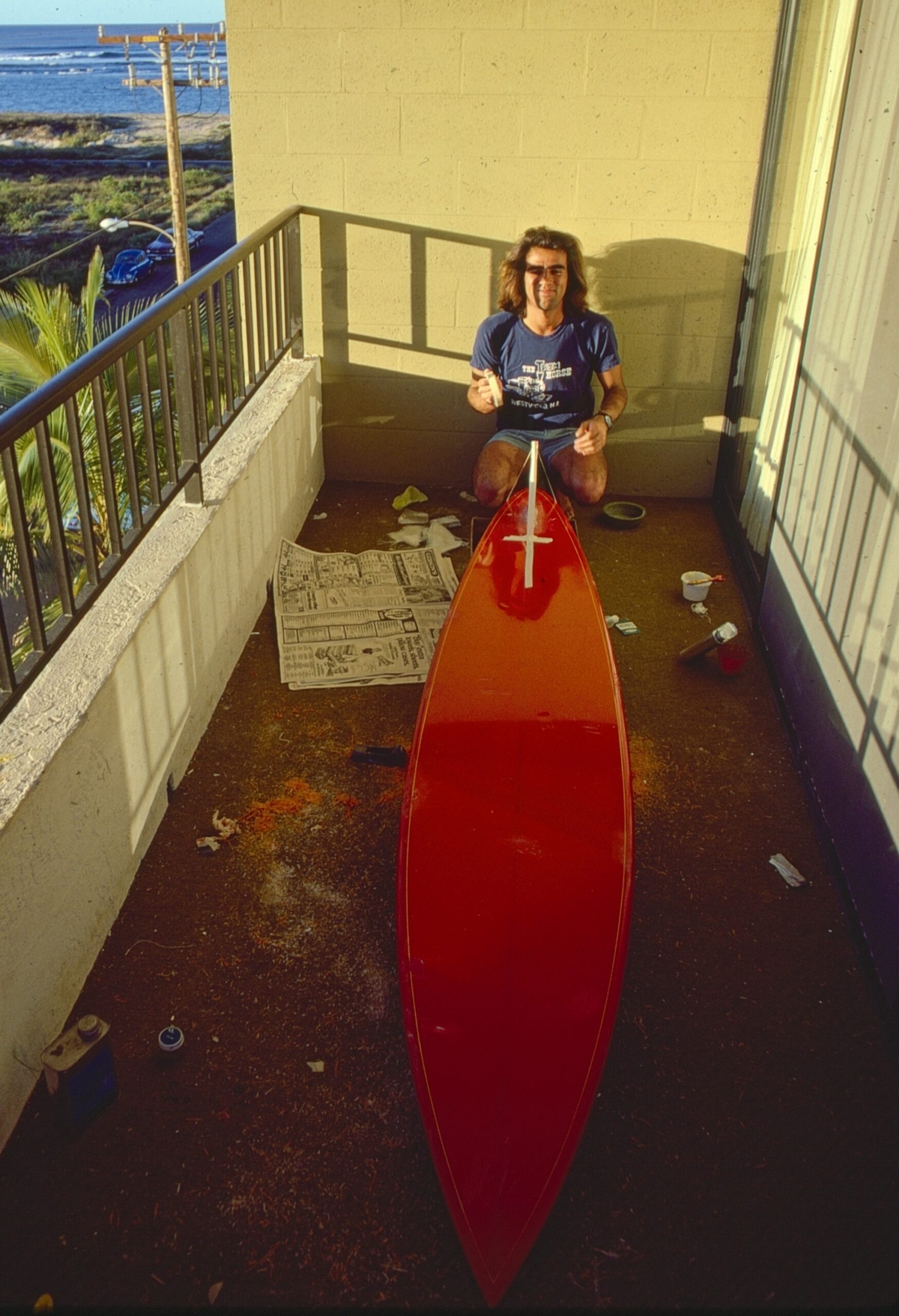 Giordano started surfing at the age of 13 in Monterey Beach and soon would be a fixture at Manasquan Inlet garnering multiple photos in the surf magazines especially during big hurricane swells. He has long involved himself with young up and coming local surfers through his surf team and involvement in youth surfing. An ongoing champion of New Jersey surfing, Giordano was the first person from New Jersey to be on the IPS World Pro Tour and have a world ranking in 1976 and 1977. Through his relationship with Australian surfer/shaper Terry Fitzgerald, Giordano was responsible for bringing Hot Buttered Surfboards to the U.S. and getting Wind n Sea legend Hank Warner to shape Fitzgerald’s designs. It was through this relationship that East Coast Surfing Hall of Famer Linda Davoli would become sponsored by Hot Buttered Surfboards during her professional career.